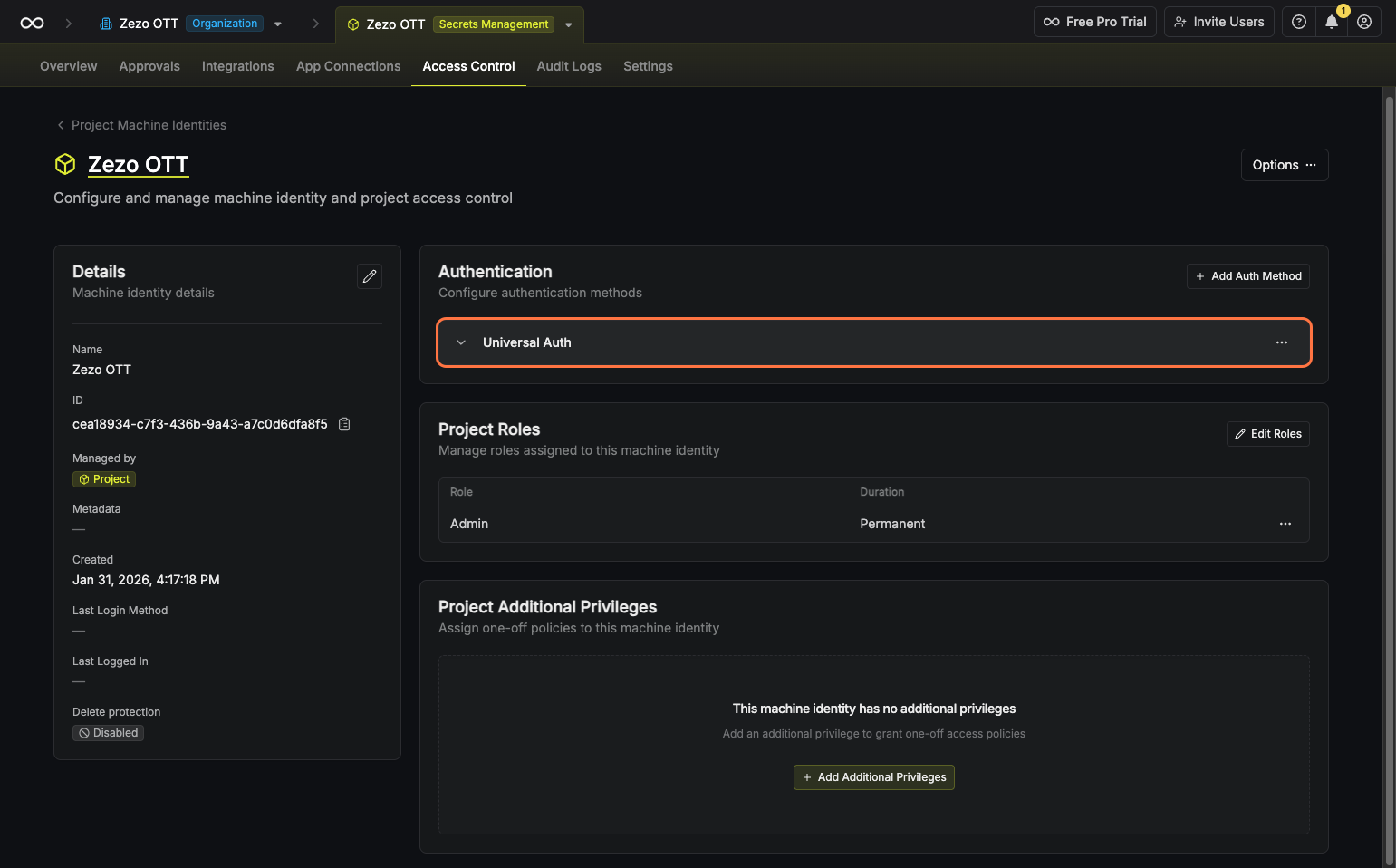 | Variable | Description | | ------------------------- | -------------------------------- | | INFISICAL_CLIENT_ID | Authenticates your backend | | INFISICAL_CLIENT_SECRET | Secure access token | | INFISICAL_PROJECT_ID | Identifies your Zezo OTT project |